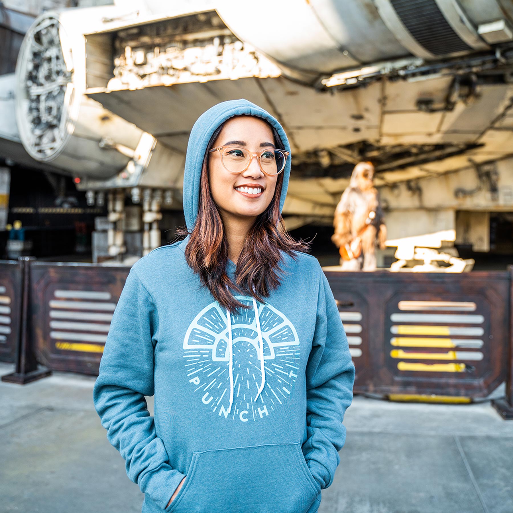"Punch it Chewie!" Jump to Hyperspace with Han Solo & Chewbacca in this Millennium Falcon hoodie. Travel across the galaxy inside the cockpit of the starship that made the Kessel Run in less than twelve parsecs 💫.
