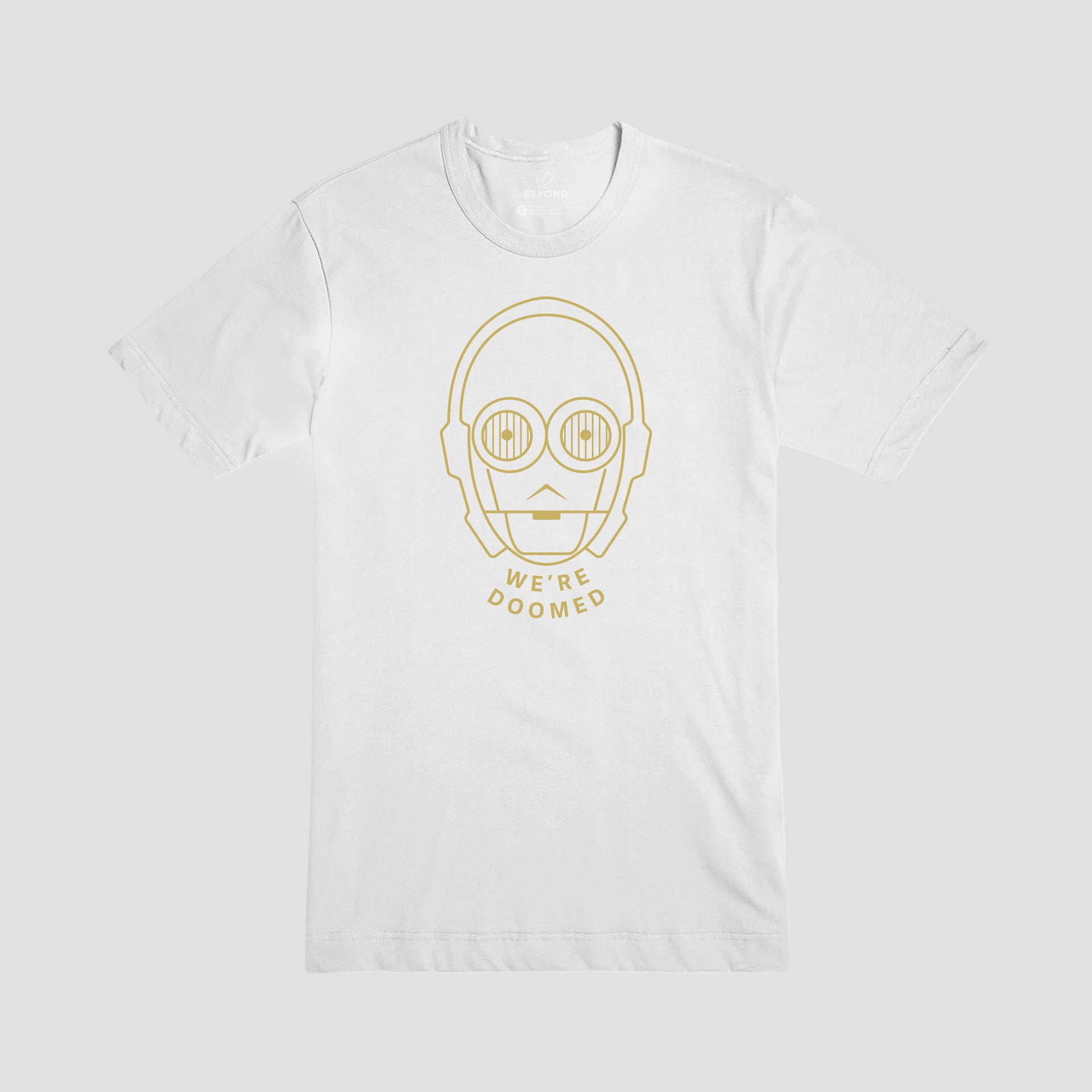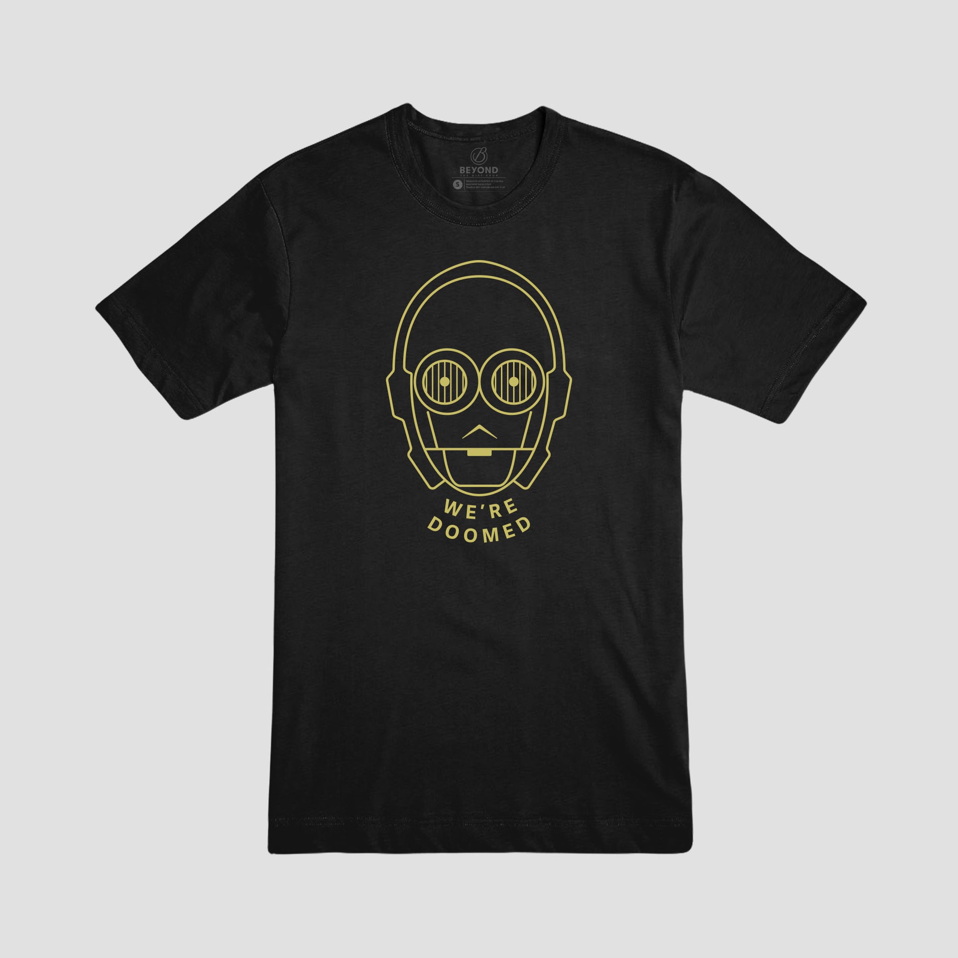 This tee was created and designed by our 6-year old son. As an at-home summer project, I tasked him with coming up with a quote and design. I had him sketched it out and we created the design together in Illustrator. He was really excited when I told him I'll be adding it to the shop! (Here's a link to the Kids Tee version: C-3PO Kids)